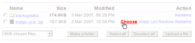 • In order to add a JClic file to the course you must use the button Choose or upload a file.... When you click on this button, a new window opens up, allowing to upload new files and/or select those already contained in the course. In order to select one of these files, click on the link Choose which appears next to the file name.